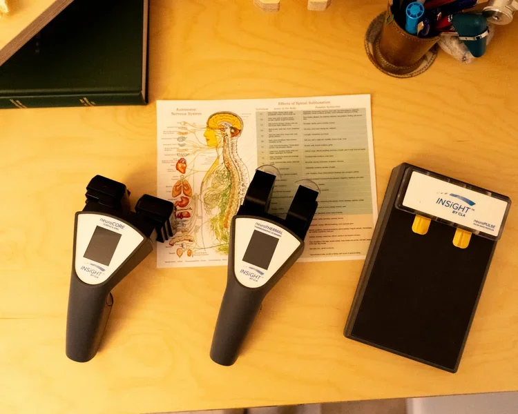 We employ CLA Synapse technology to objectively measure nervous system function and as a way to track progress over the course of chiropractic care. Handheld instruments will capture temperature and electrical balance along the surface of the spine. The spinal thermography and surface EMG scans are non-invasive, do not involve needles or radiation, and take less than 5 minutes to perform. We also look at heart rate variability (HRV), which requires only that you sit quietly for 3 minutes with your hand on a trackpad.