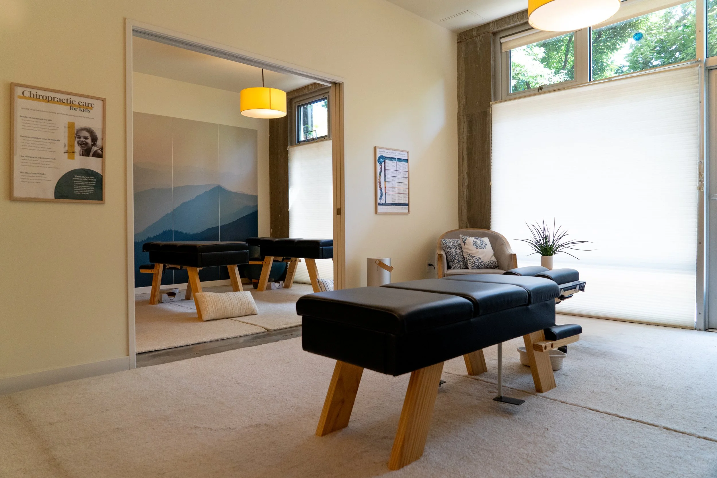 On your First Visit we’ll review an in depth health history, discuss your concerns and your goals, perform a posture assessment, spinal scans to measure nervous system function, and a chiropractic clinical exam. We’ll identify the critical places your body is holding stress and offer a focused adjustment session so you can experience our style of care. Before you go, we’ll schedule a Report of Findings phone call to check in with you, review your experience and your scans, and make care plan recommendations.